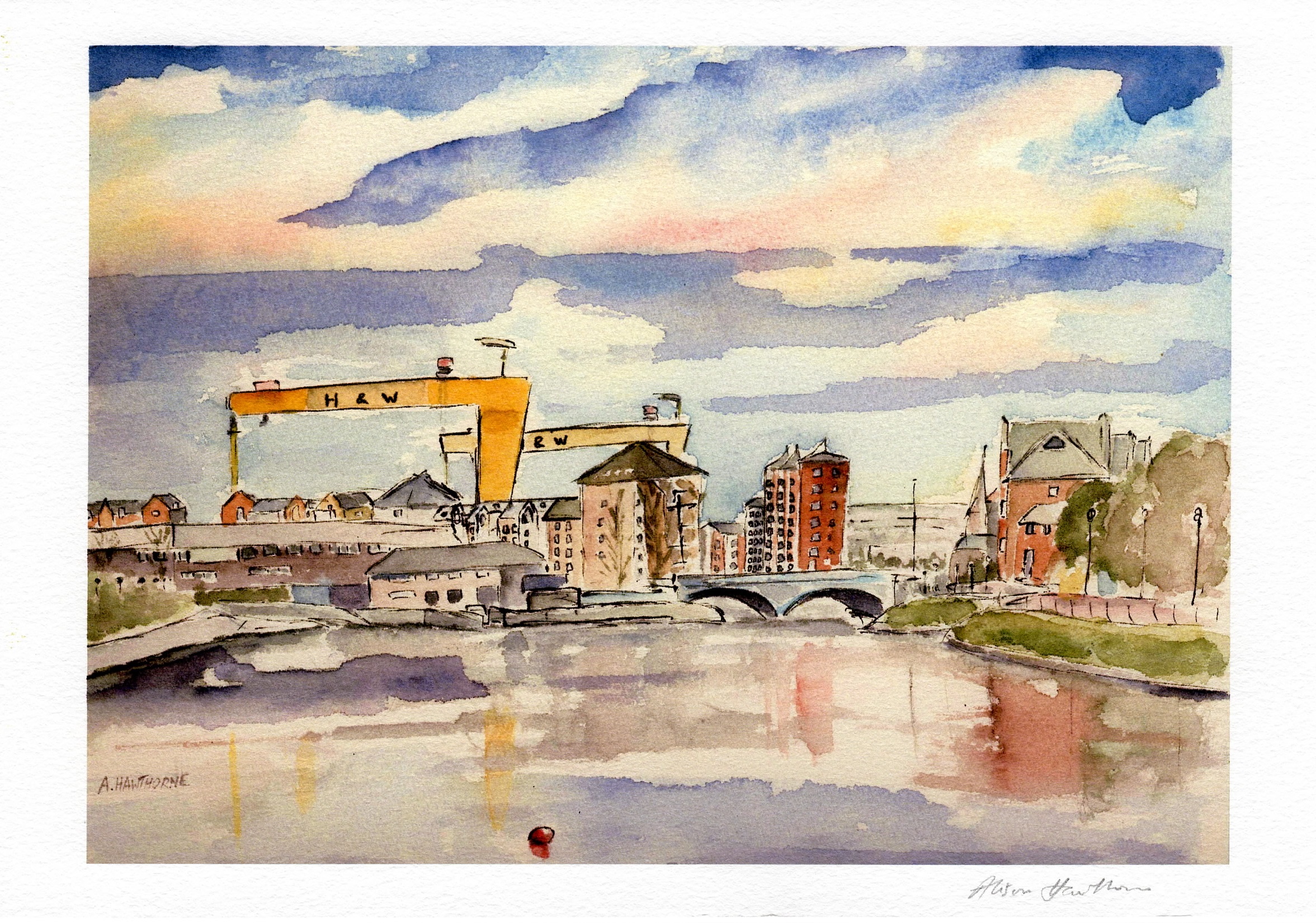 'HARLAND AND WOLFF' signed print17.3 cm by 12.3 cm image on quality watercolour digital paper. |