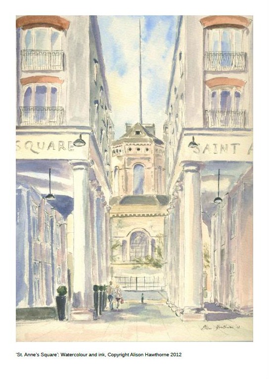 'St ANNE'S SQUARE' signed print24.8cm by 18 cm image on quality watercolour digital A4 paper. |